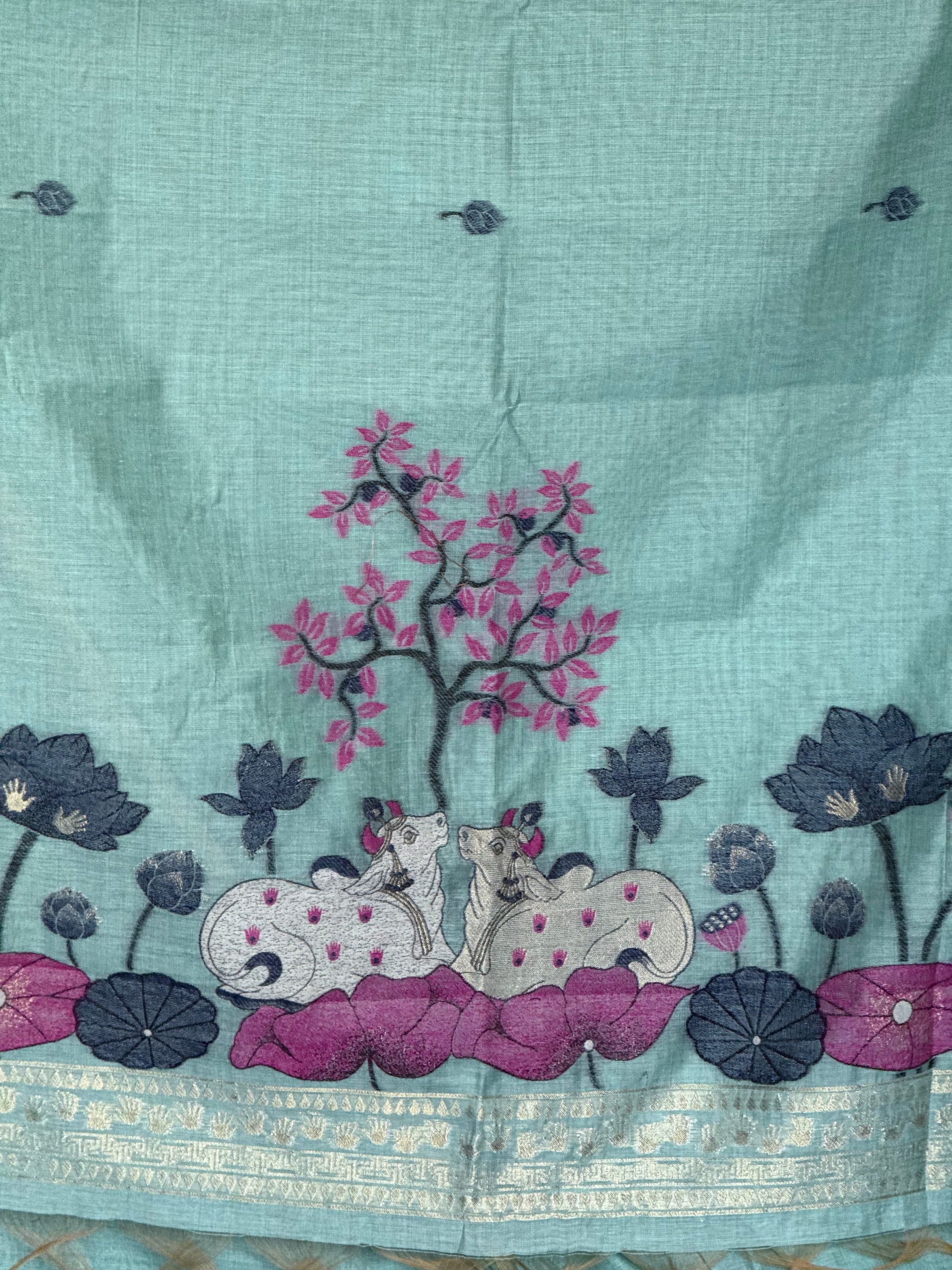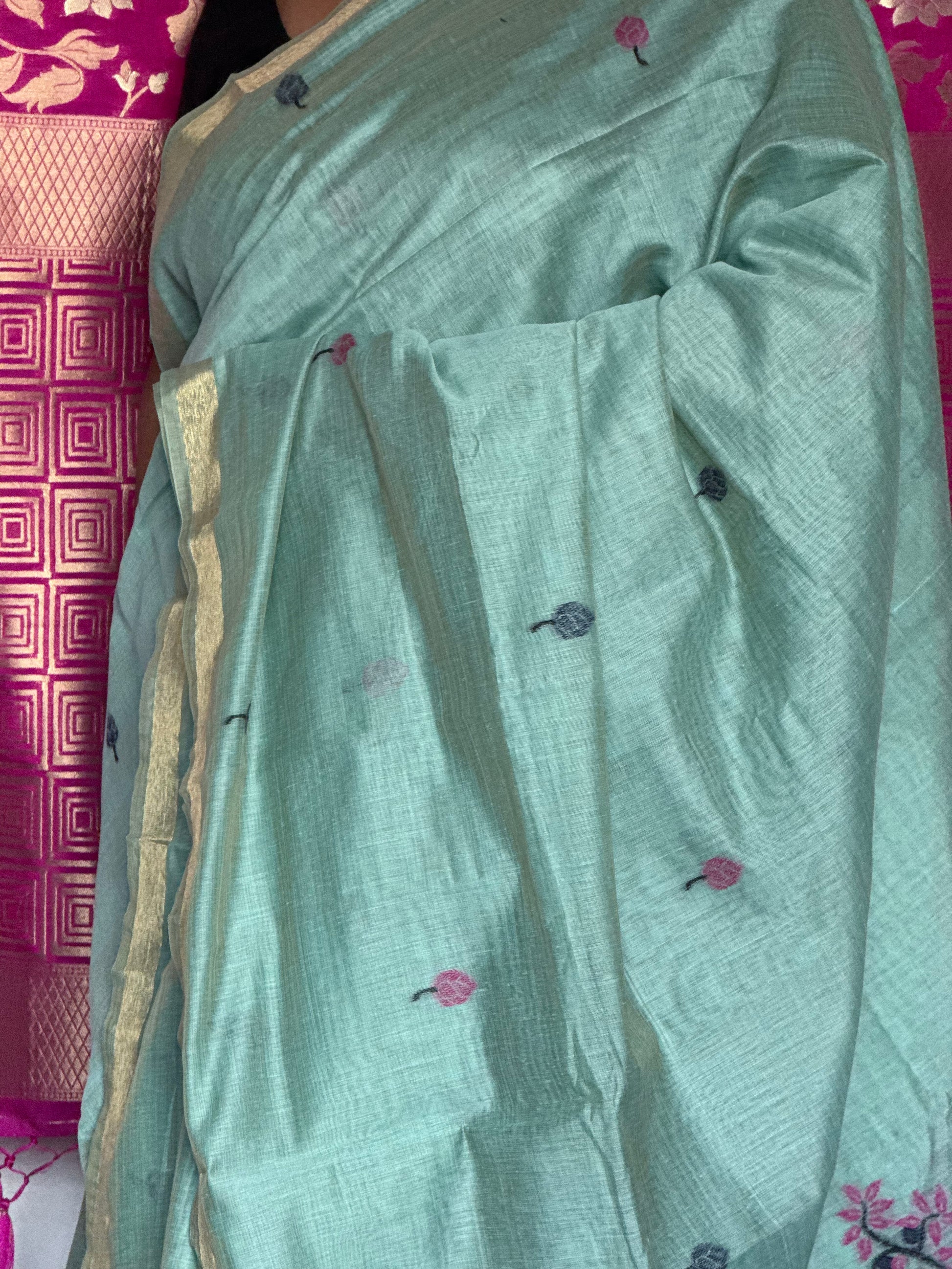Semi matka saree featuring intricate pallu embroidery. Perfect for effortless festive charm.