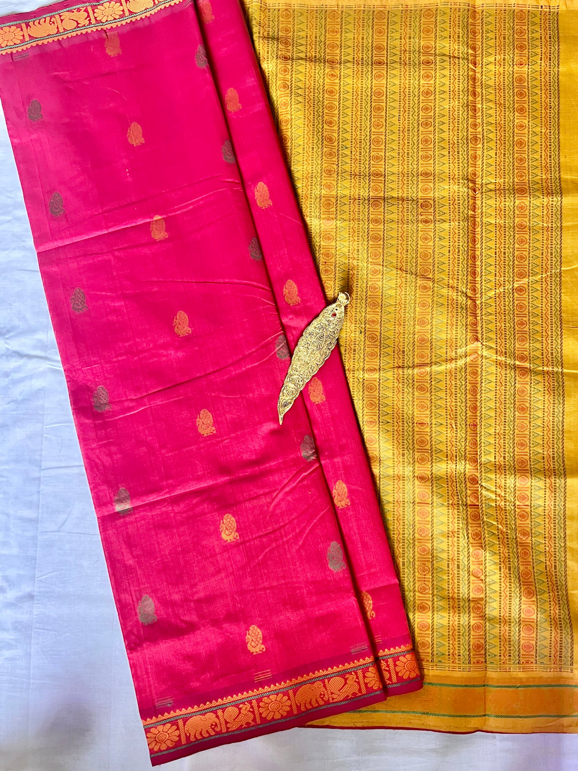 Simple, stunning, and so comfortable. Our semi-silk cotton sarees are perfect for personal use and gifting.