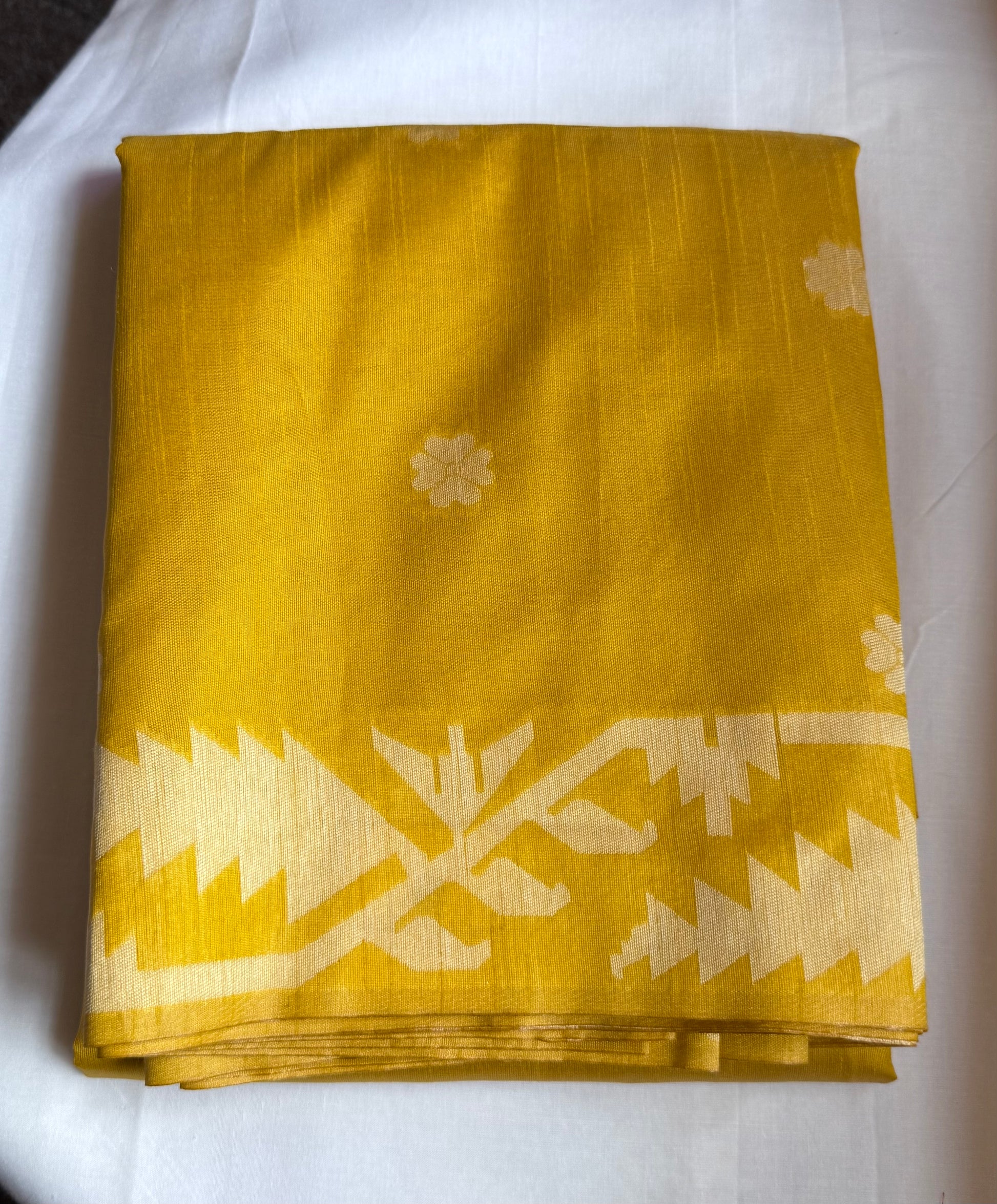 A soft yellow semi tussar that shines with natural texture.